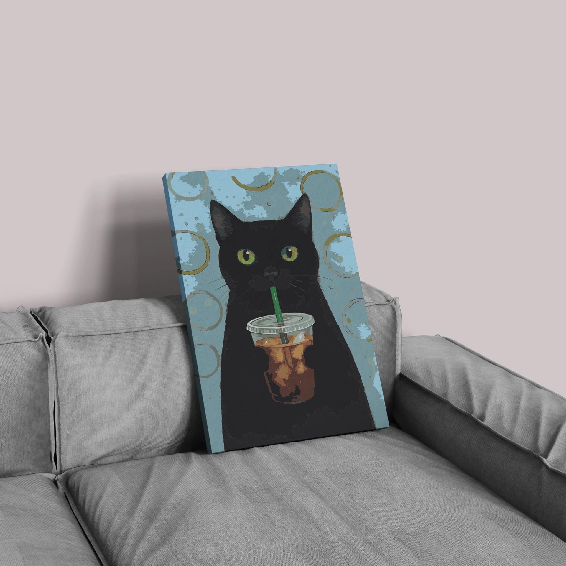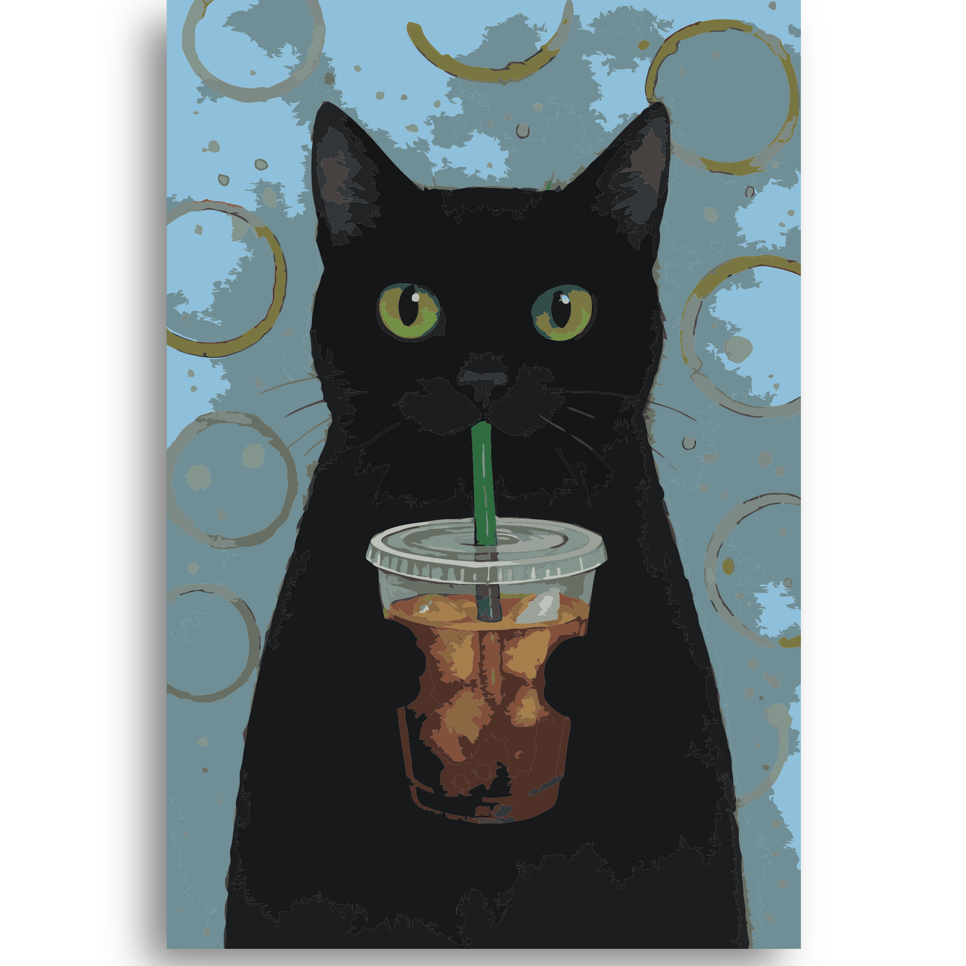 Black Cat Iced Coffee Paint By Numbers Kit: Funny DIY Cat Art