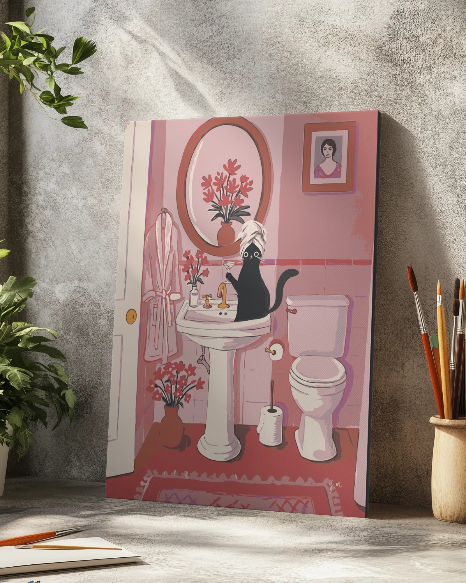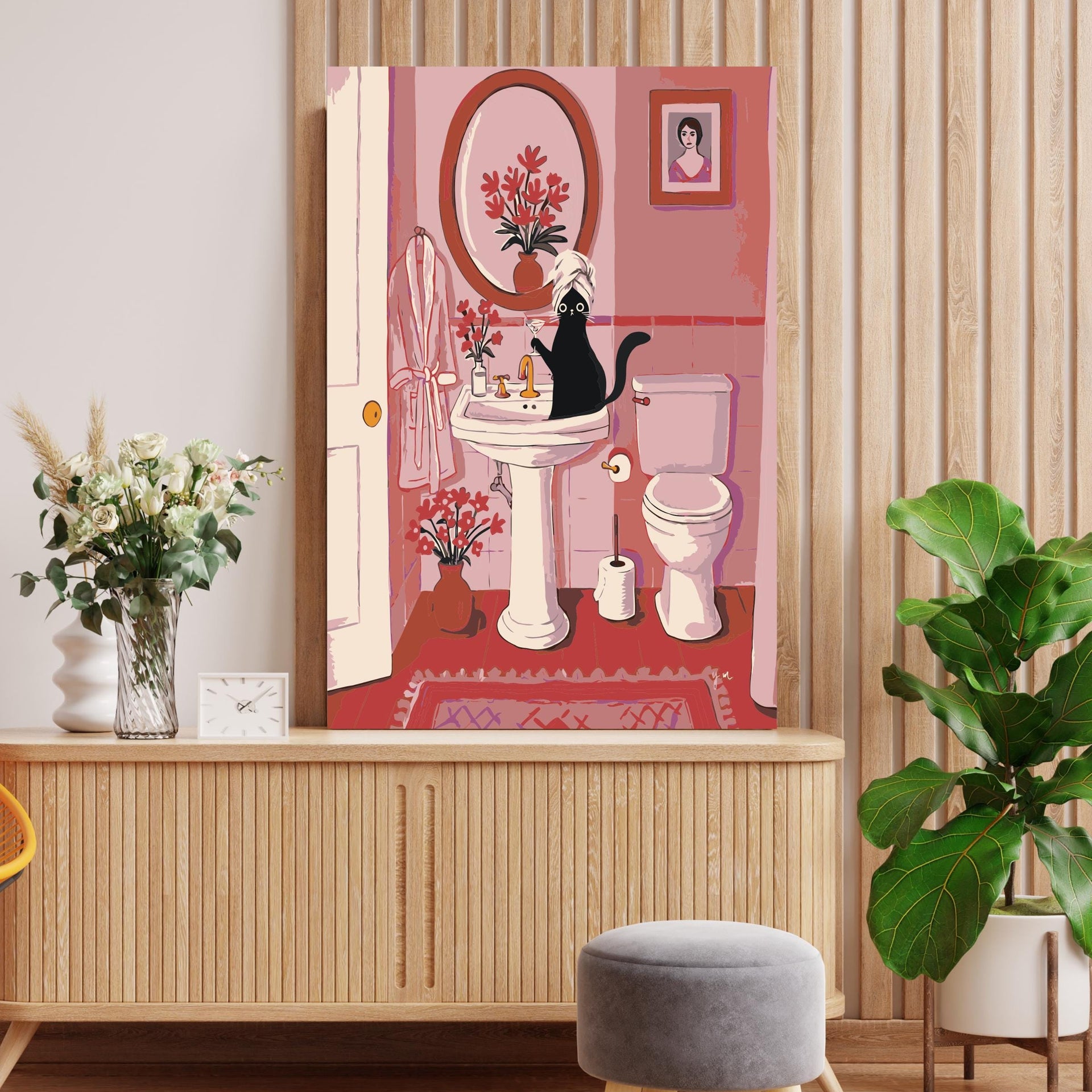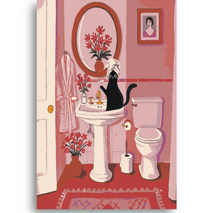Cat Bathroom Ritual Paint by Numbers Kit - Funny Cat Art