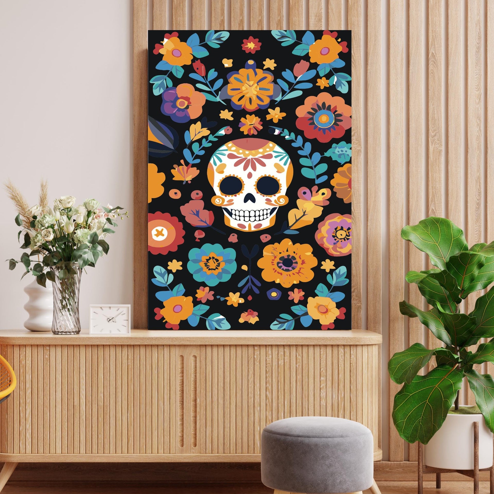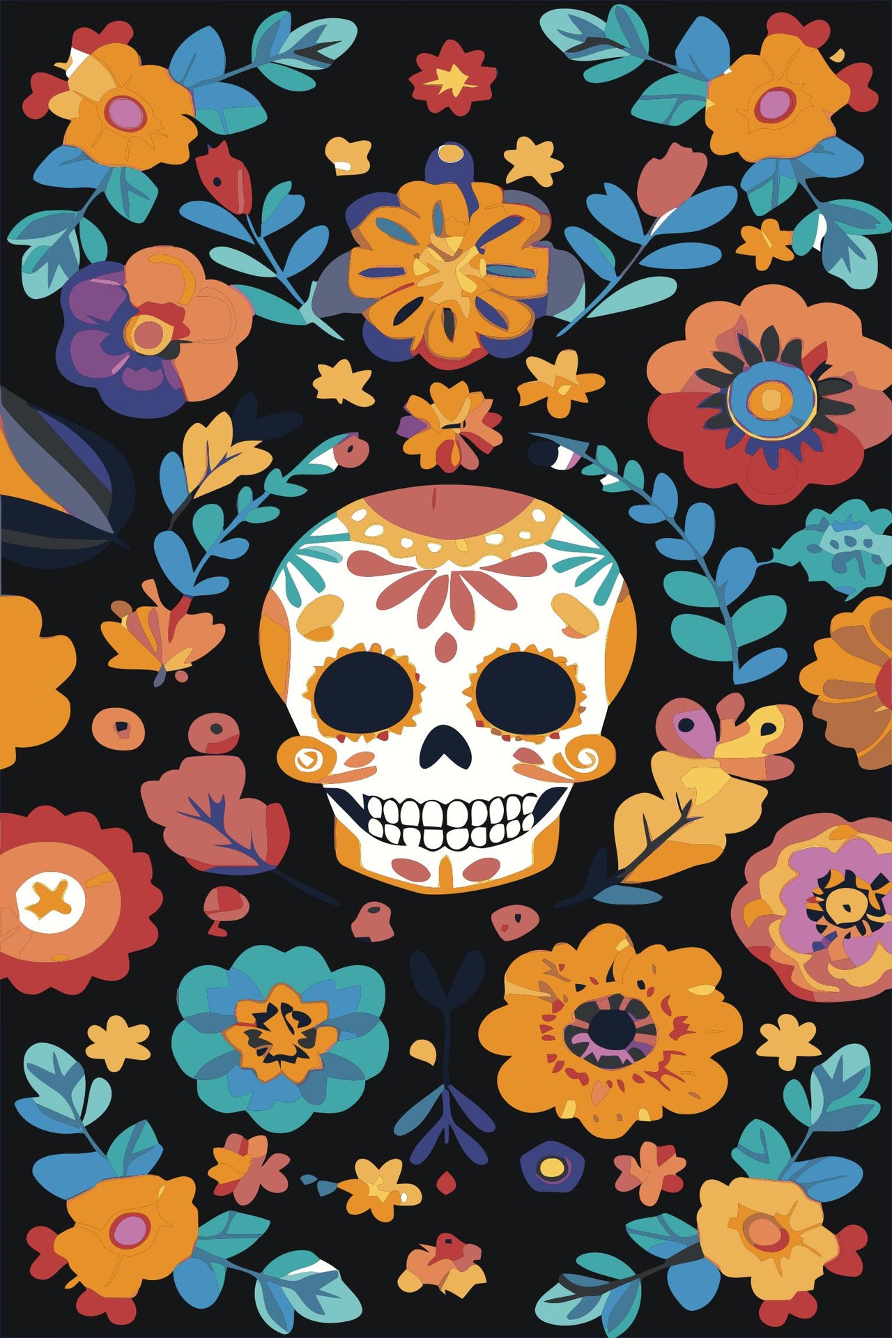 Colorful Sugar Skull Paint by Numbers Kit: Día de los Muertos Skull DIY Painting