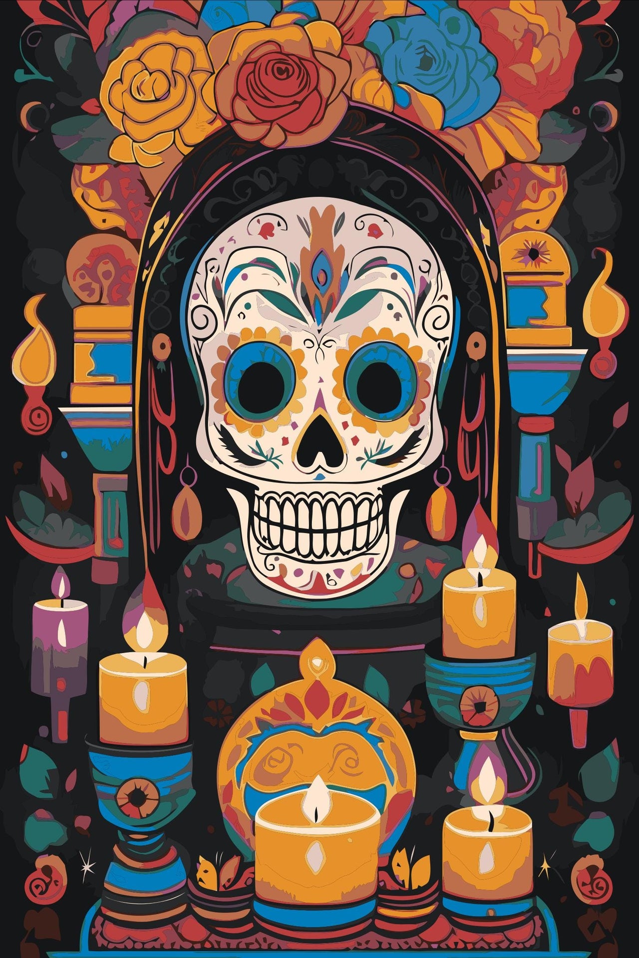 Day of the Dead Skull Paint by Numbers Kit – Vibrant Floral Sugar Skull DIY Painting