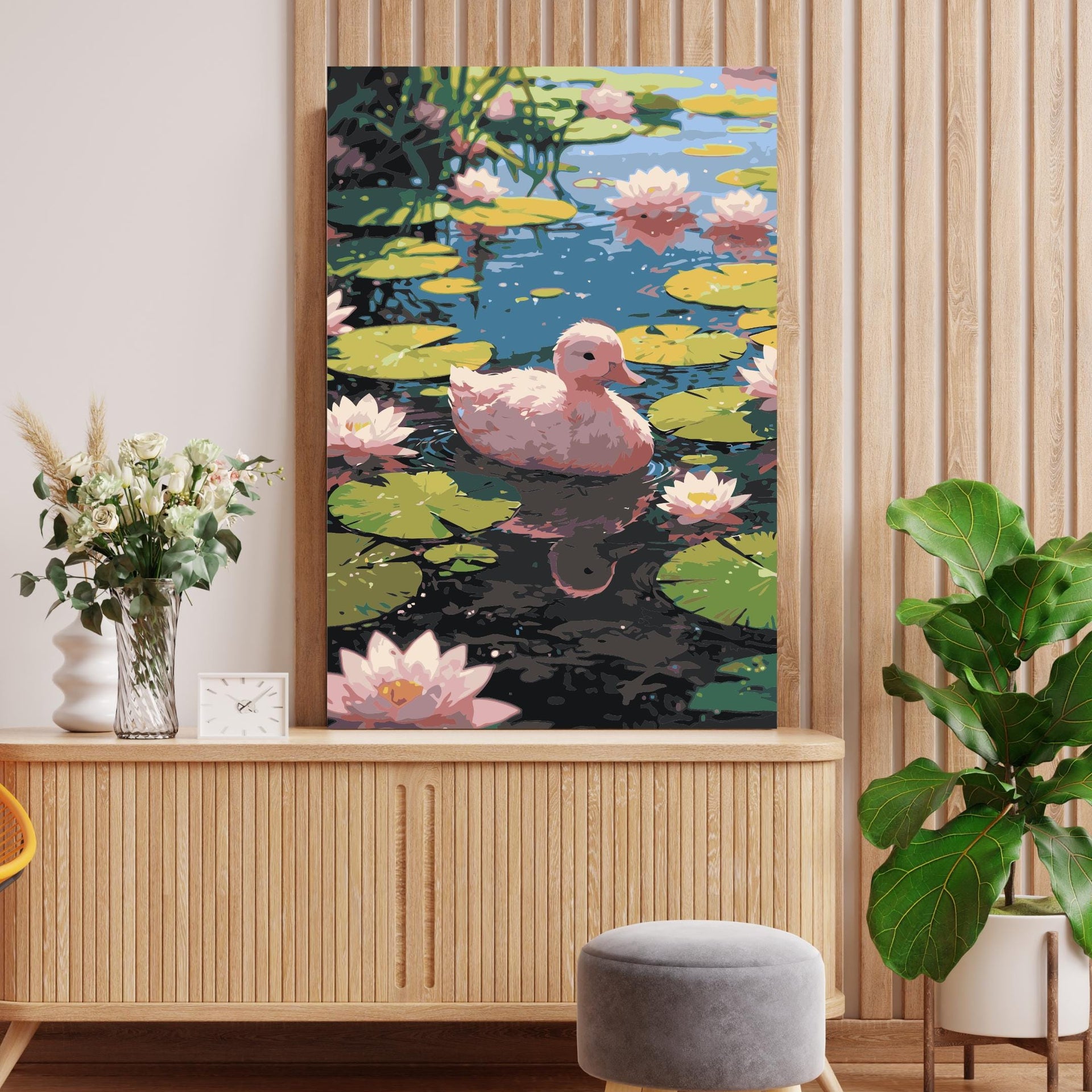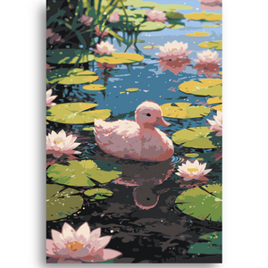 Duck in Lotus Pond Paint by Numbers Kit - Nature Water Scene