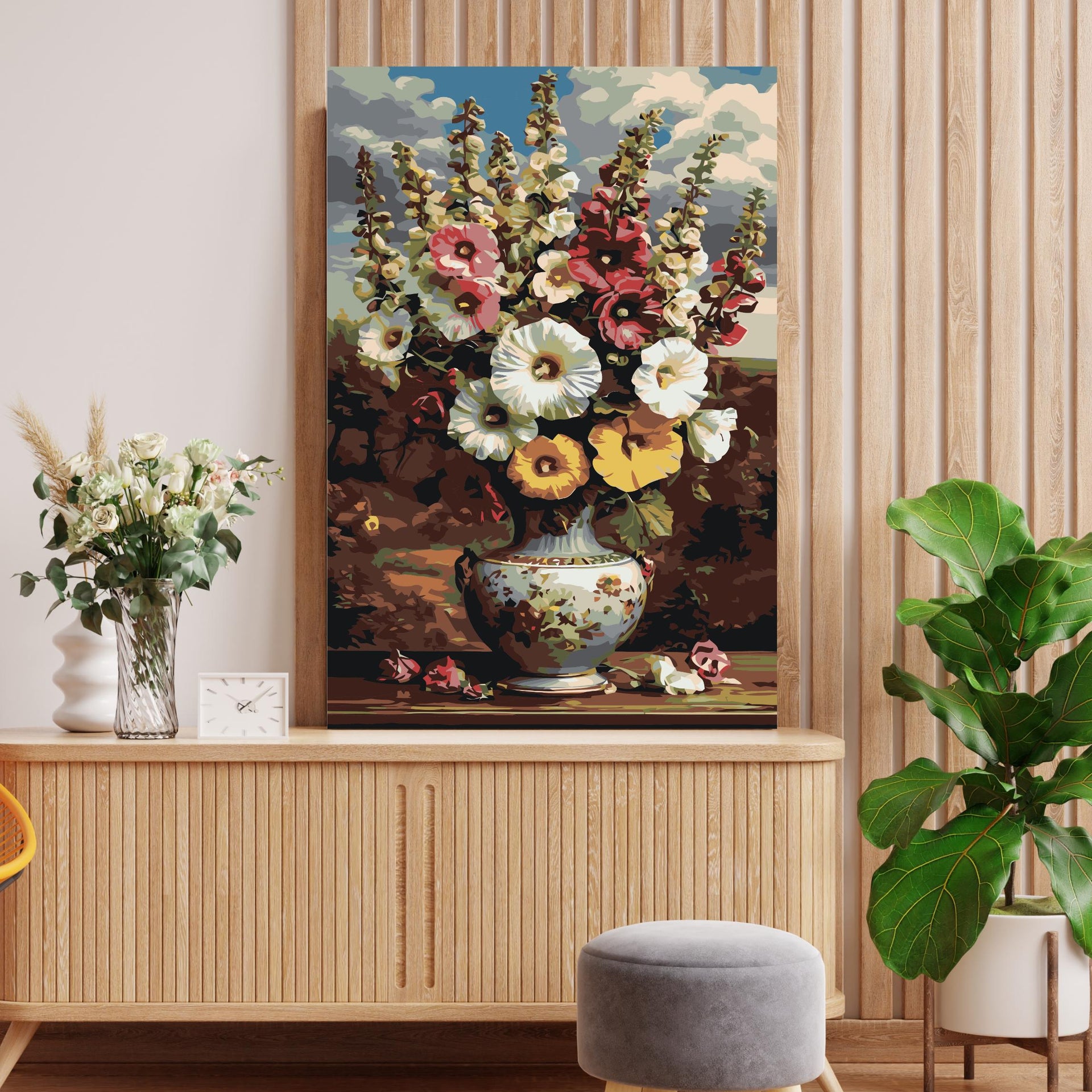 Flowers in Vase Paint By Numbers Kit | DIY Floral Canvas Painting for Adults | Elegant Flower Wall Art