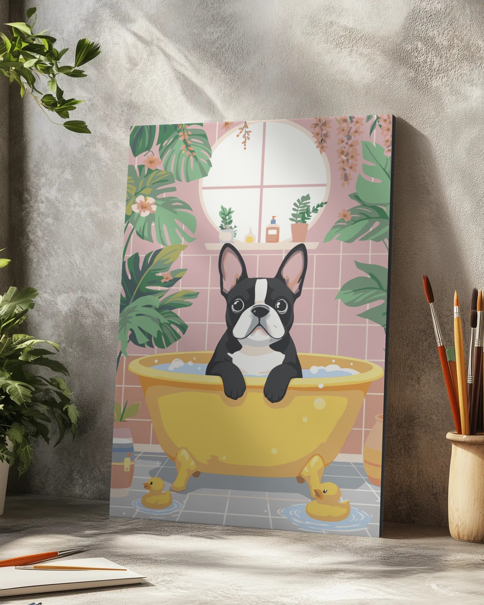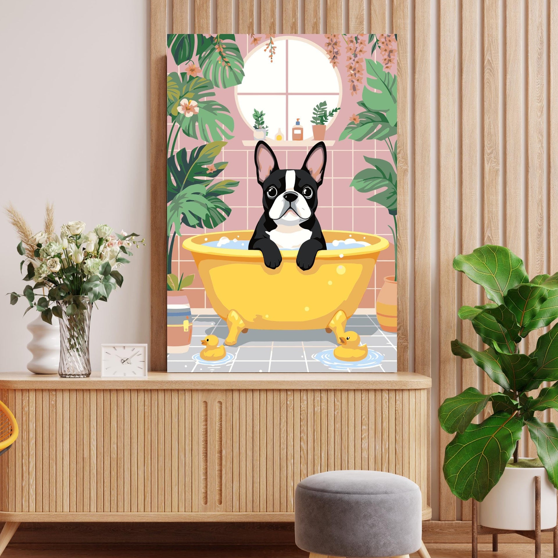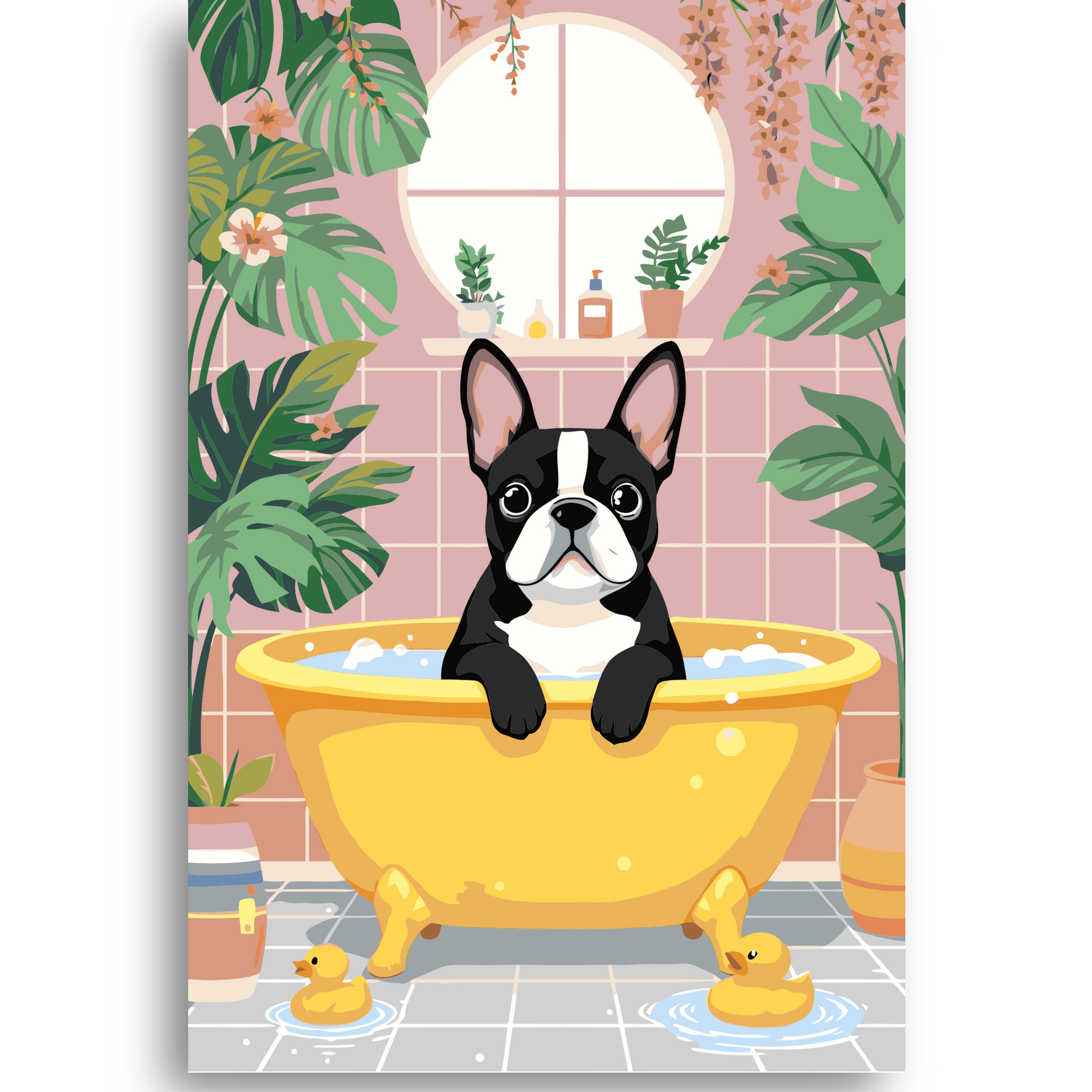 French Bulldog Bathroom Paint by Numbers Kit - Cute Dog Art