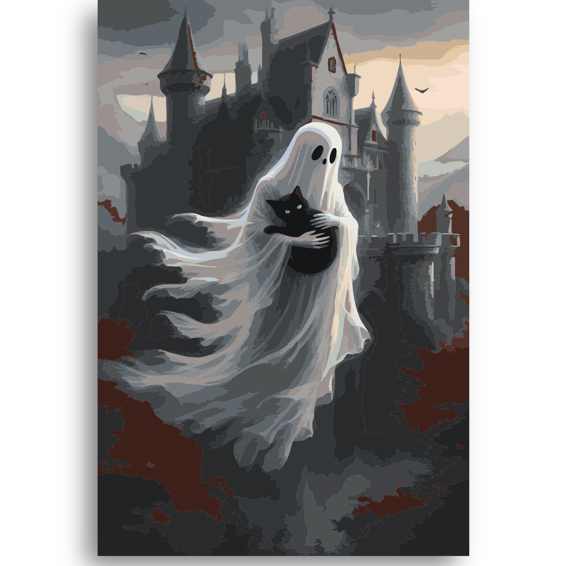 Gothic Ghost & Black Cat Paint by Numbers Kit