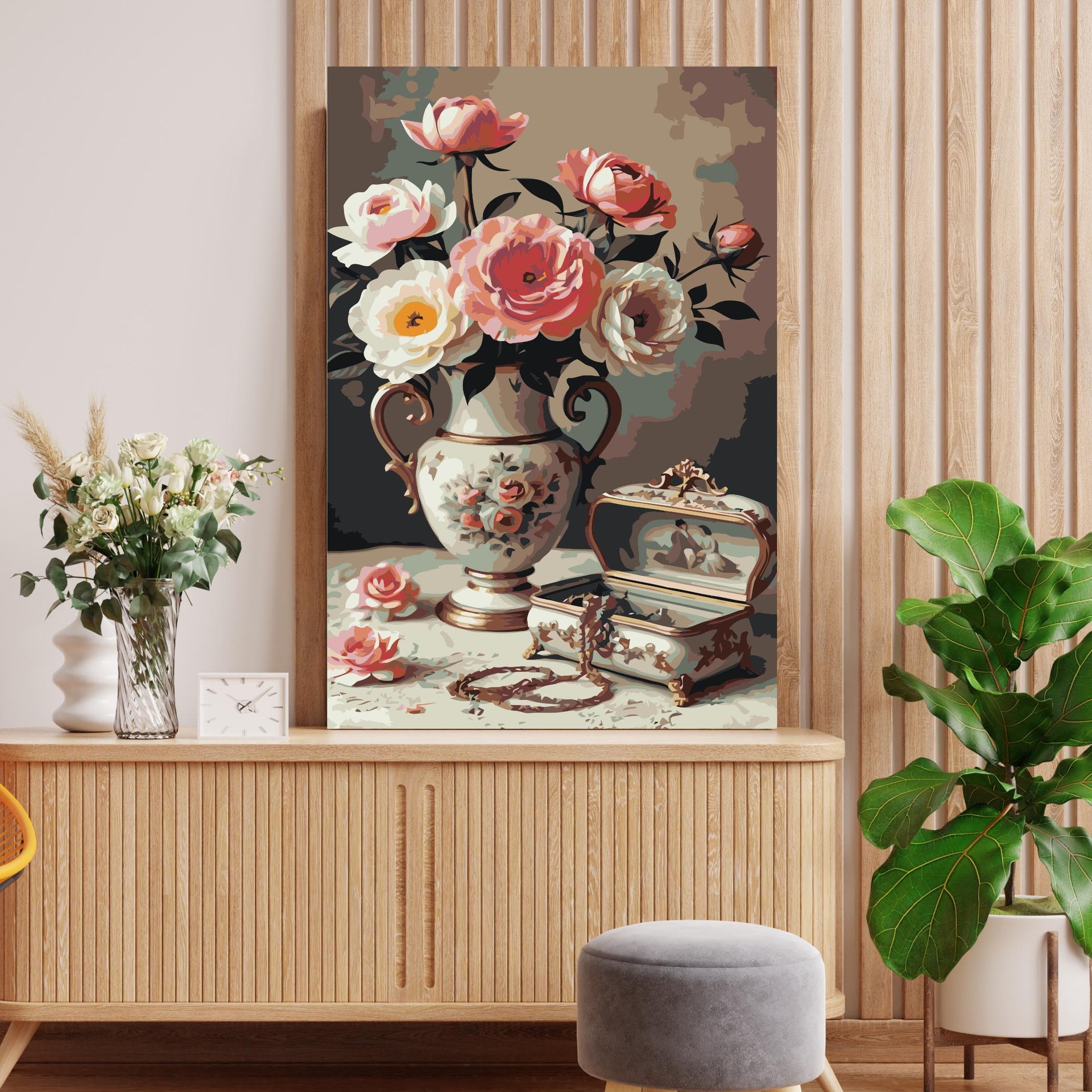 Vase of Flowers Paint By Numbers | DIY Canvas Art Kit for Adults | Bright Floral Bouquet Wall Decor
