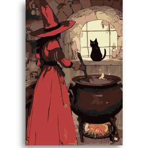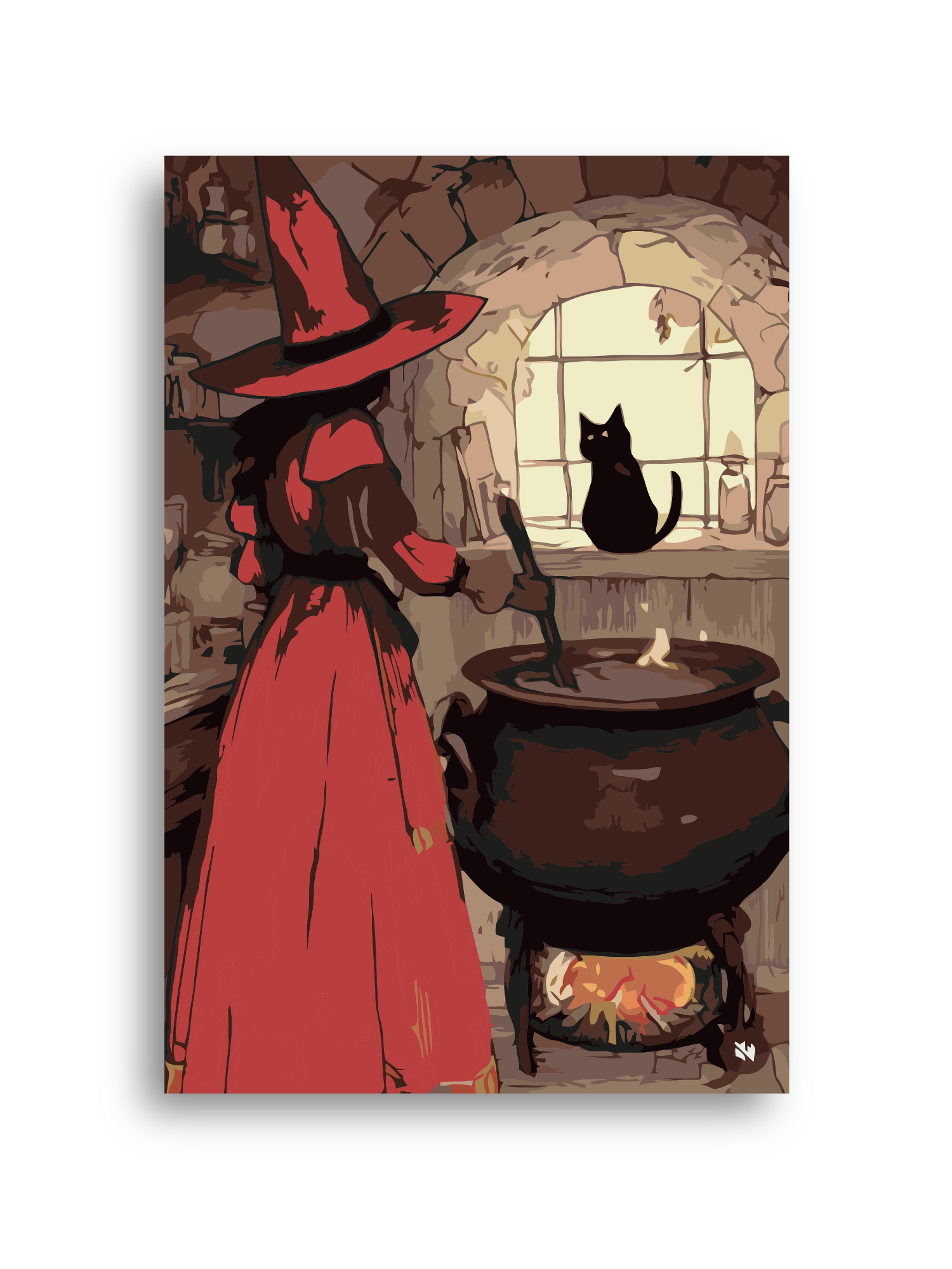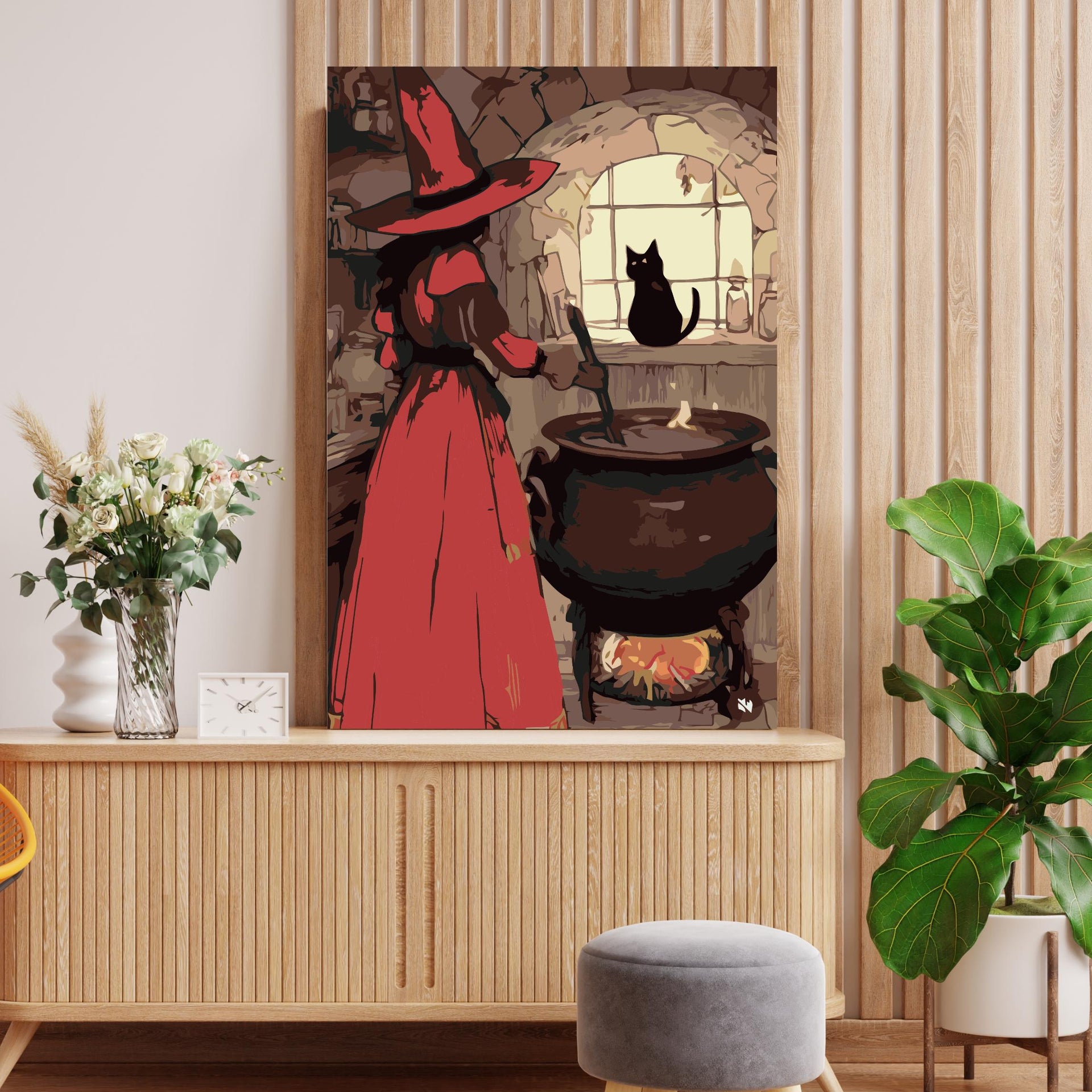 Witch and Black Cat Paint By Numbers Kit | DIY Halloween Canvas Art | Spooky Cauldron Scene Painting for Adults